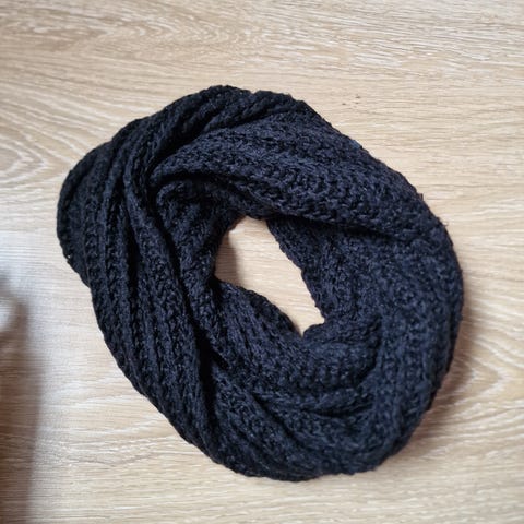 Myydään harmaa kaulahuivi. Koko n. 220 cm x 45 cm.