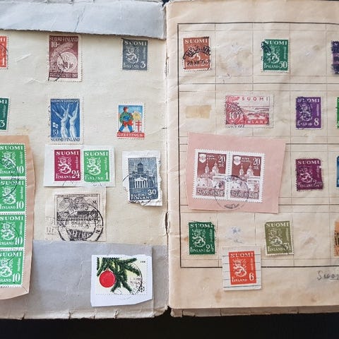 Suomi postimerkit kokoelma. Erilaisia suomalaisia postimerkkejä, useita eri arvoja ja aiheita, muun muassa historiallisia ja maisema-aiheisia merkkejä. Sopii esimerkiksi keräilyyn tai täydennykseksi olemassa olevaan postimerkkikokoelmaan.
