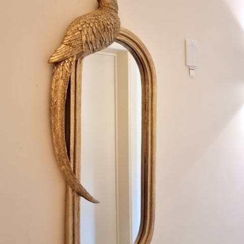 Upea peili, kultainen väri, erittäin kaunis muotoilu. Mitat ovat seuraavat (+/-):Korkeus: 44 cmLeveys: 44 cmKaikki tuotteemme pakataan hyvin ja lähetetään vakuutettuna.