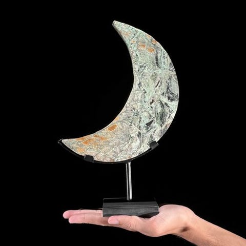 Upea pari vihreää smithsoniittia, munanmuotoista ja pallomaista.Vihreä smithsoniitti, joka tunnetaan myös nimellä vihreä sinkkisavi, on mineraali, joka kuuluu karbonaatit mineraaliryhmään. Se on sekundäärinen mineraali, joka muodostuu primaaristen sinkkivarantojen rapautumisen ja hapettumisen seurauksena. Smithsoniitti esiintyy tyypillisesti eri väreissä, kuten vihreänä, sinisenä, vaaleanpunaisena, keltaisena ja ruskeana. Smithsoniitin vihreä väri johtuu usein kuparipitoisuuksista. Se on suhteellisen pehmeä mineraali, jolla on kovuus 4–4,5 Mohsin asteikolla, mikä tekee siitä naarmuuntuvia.Noin mitat, mukaan lukien jalusta.Munamainen muotoKorkeus: 15,8 cm, Ø: 9,4 cmSferaKorkeus: 14,5 cm Halkaisija: 7 cmHUOMIO:Yksi tai useampi kuva esittää tyyliteltyä esinettä. Tarkat tiedot myytävästä esineestä löytyvät muista kuvista. Tyylitellyssä kuvassa olevat esineet eivät sisälly myyntiin.Paino, joka mainitaan, sisältää pakkausmateriaalin.LähetysKohde lähetetään seurantanumerolla DHL Parcelin, DPD:n tai postNlin kautta. Seuranta päivittyy Catawiki-luettelossasi, kun pakettisi on jätetty postiin.Ole hyvä ja tarkista säännöllisesti välttääksesi pakettisi palautumisen meille, jolloin ostaja vastaa toisen lähetyksen toimituskuluista.Seurantaan Espanjaan ja Portugaliin käytä tätä linkkiä ja lisää Catawiki-erästäsi saatu seurantanumero.https://clientesparcel.dhl.es/LiveTracking/HomeME EMME YHDISTÄ TOIMITUKSIA!!!Jos sinulla on kysyttävää paketistasi, ota meihin yhteyttä Catawiki-viestipalvelun kautta. Pyrimme vastaamaan kolmessa työpäivässä.