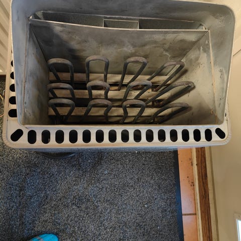 Siitä tarvitsevalle erittäin patinoitunut Aitokiuas 47. Pesän pohja ja takaseinä murteilla (kts.kuvat). Kiuas on nyt purettuna ja kaikki osat tallella. Vain nouto.