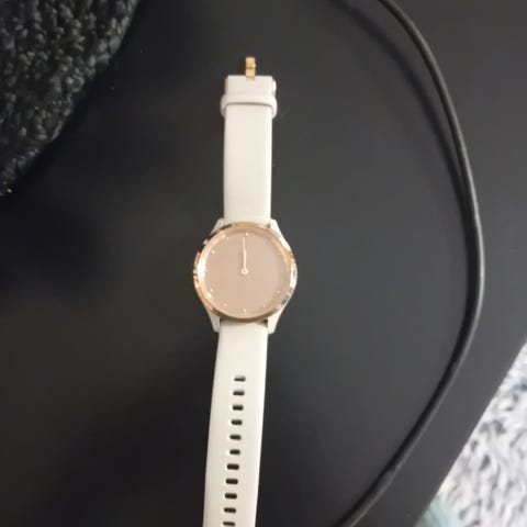 Garmin älykello unisex-käyttöön. Kellossa on pyöreä kosketusnäyttö ja vaalea ranneke, jossa on perinteinen solkikiinnitys ja useita säätöreikiä. Sopii ranteen aktiivisuuden, ajan ja muun perusseurannan tarpeisiin sekä arki- ja vapaa-ajan käyttöön kaiken sukupuolisille käyttäjille.