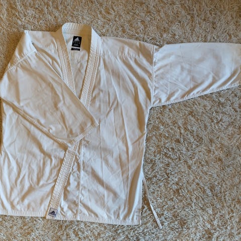 Arawaza Lightweight karatepuku valkoinen unisex. Pukuun kuuluu takki ja housut. Materiaali on kevyttä kangasta, joka soveltuu kamppailulajeihin, erityisesti karaten harjoitteluun ja kilpailuihin. Takissa on WKF Approved -merkintä. Housut Adidas.Unisex-malli sopii sekä naisille että miehille. Koko on merkitty valmistajan kokomerkinnällä 0/130, joka on tarkoitettu noin 130 cm pituiselle käyttäjälle.