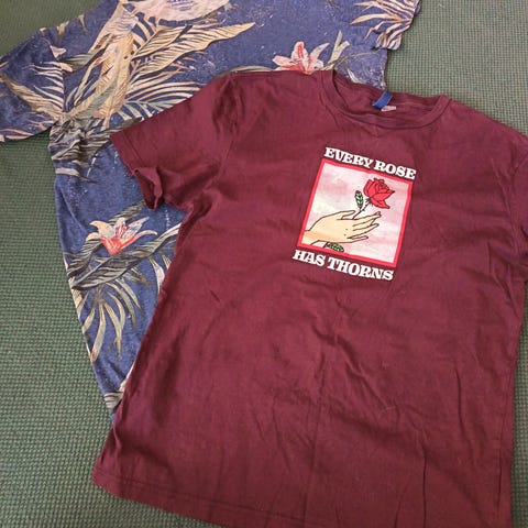 Punainen t-paita. Ei niin kirkas punainen kuin kuva antaa ymmärtää! Enemmän sellainen kulutettu punainen.