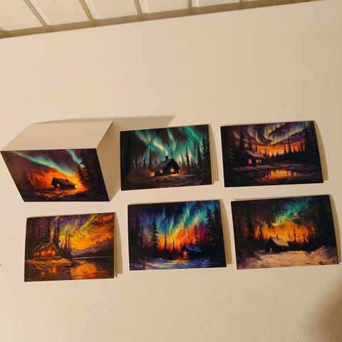 Lekolarista tilatut kortit, 4 pakettia. Aiheet;