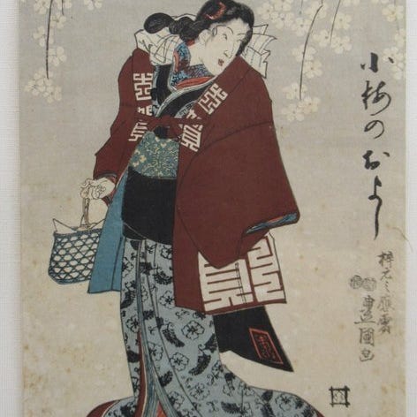 Alkuperäinen puupiirros vuodelta 1852.Taiteilija: Utagawa Toyokuni Ⅲ(Kunisada)(1786-1864) ja Utagawa KunisadaⅡ(1823–1880)Kunto: Ikään nähden sopiva tai hieman heikompi. Yleisesti esiintyy joitakin vaurioita ja likaa. Taittumisjäljet ovat melko voimakkaat.Toimitus tapahtuu Japan Postilta, pakattu turvallisesti, seuranta vakuutettu.Se ei ole 'express air', vaan 'tavallinen', ja toimitusaika on noin 2-3 viikkoa.