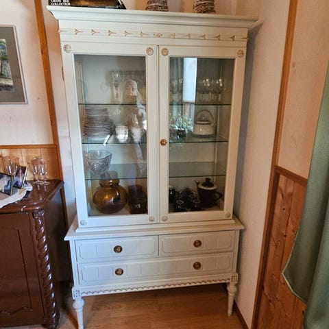 Laitalan kustavilainen/rokokoo lasi vitriini hopeakaappi. Voi kuljettaa kahdessa osassa. Hyvässä kunnossa. Edullisesti nopeasti pois.