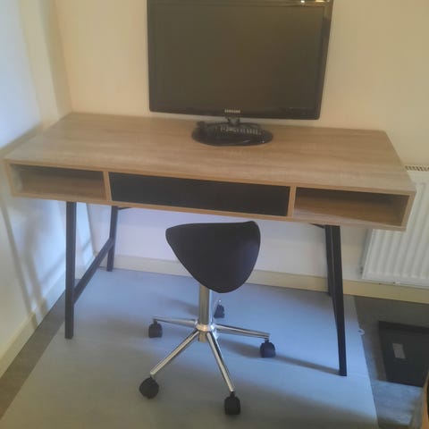 Myydään hyvässä kunnossa oleva: Työpöytä ja tuoli. Myydään yhdessä tai erikseen. Pöytä 75 euroa. Tuoli 75 euroa.