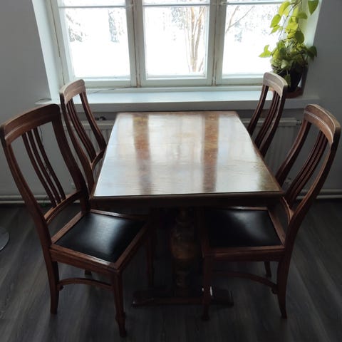 Muuton tieltä myyntiin käytetty ja tukeva ruokapöytä. Pöydässä 4 toimivaa vetolaatikkoa. Jalat irroitettavissa työkalulla.