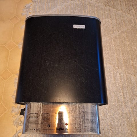 Vanha paketti, mutta tuntui ainakin lämpenevän hyvin. En ole itse varsinaisesti käyttänyt(saunonut) enkä vettä laittanut säiliöön, joten en osaa kunnosta kertoa enempää.