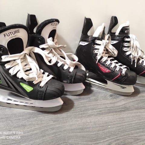 Hyväkuntoiset Reebok jääkiekkoluistimet, pohjallinen 34,7cm. Alkuperäisessä laatikossa.