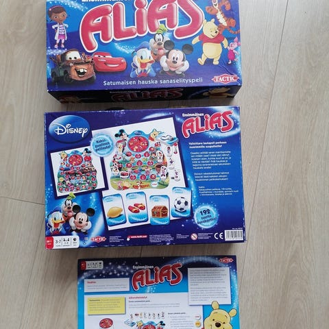 Sisältää pelilaudan, kortteja, pelinappuloita ja pakan käyttämättömiä kortteja, joihin voi itse keksiä haluamiaan sanoja.