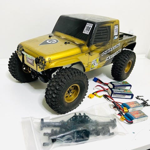 Perskarunko, iskarit, vesitiivis servo, spektrum radio ja vastari, sivulevyt, puskuri, kori, trencher kumit, aluvanteet (sisäkehältä painoja liimattu).