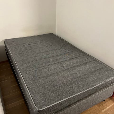 Ehjä sänky. Tekstiilipesurilla saa keltaiset pois. Ei ole petaria