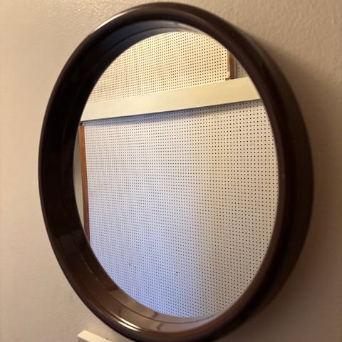 Täysin ehjä retro pyöreä peili.