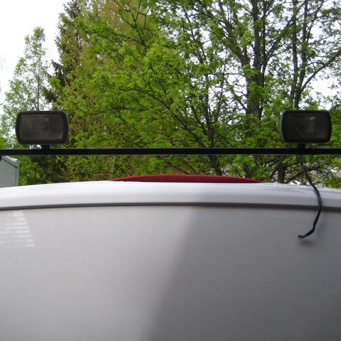 Mukaan saa johtosarjan jolla on helppo kytkeä valot autoon.