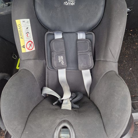 Britax Römer -turvaistuin+telakka, jossa on viisipistevaljaat ja pehmustetut olkavyöt. Väri on ruskean oranssi. Istuimen kuori on musta ja siinä on SICT-sivutörmäyssuoja. Sopii autoon käytettäväksi lapsen turvaistuimena, kun paino- ja kokosuositukset täyttyvät. Ollut käytössä yhdellä lapsella 4-vuotiaaksi asti. Kiinnitys tapahtuu istuimen ja mahdollisen telakan ohjeiden mukaisesti auton turvavöillä tai ISOFIX-kiinnityksellä, jos autossa on siihen valmius.