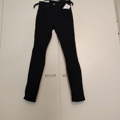 H&M 90’s Baggy naisten farkut. Väri harmaa ja materiaali denim. Koko 38, vyötärökoko W29. Malli on väljä ja suora lahkeesta.