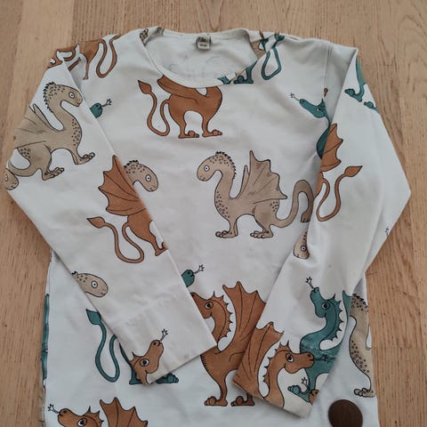 Blaa lasten paitasetti, koko 110/116, unisex. Materiaalina puuvilla. Vaatteessa on kirjavat kuosit, jotka sopivat sekä tytöille että pojille. Paita soveltuu arkeen ja leikkeihin, ja puuvillamateriaali tekee siitä miellyttävän käytössä. Keltaisessa tussinjälkeä hihansuussa.