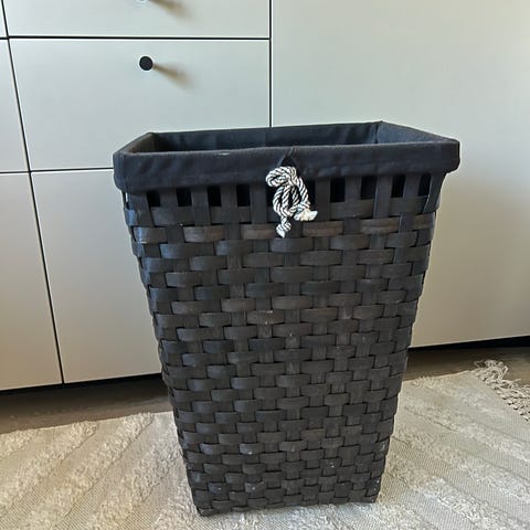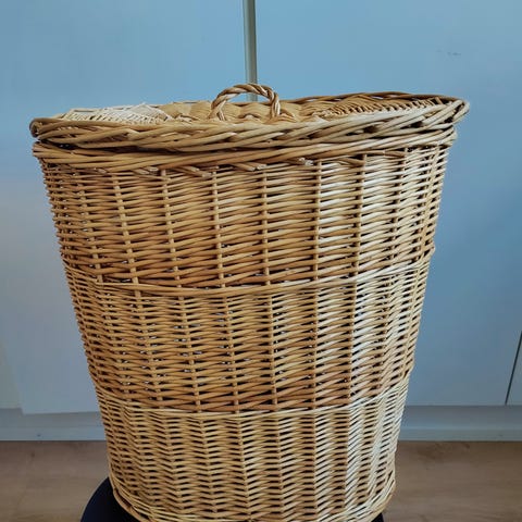 Vanha rottinkinen pyykkikori