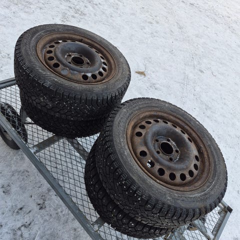 nokian nordman 5, 185/60 R15,opelin peltivanteilla jako 4x100 keskireikä 56.6 ET49. pintaa n,7mm nastat paikoillaan