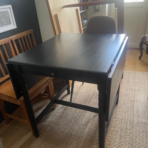 Hyväkuntoinen klaffipöytä myynnissä muuton vuoksi. Alkuperä ei muistissa mutta on suomalainen kalusteliike noin vuonna 2018. Toimiva kampe.