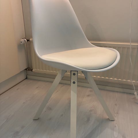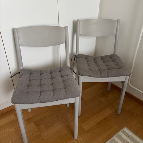 Ruokailuryhmän tuolit 6kpl. Helppo päällystää uudelleen! Maalipinta ihan ok, mutta saattavat tarvita ruuvien kiristystä/tarkistusta. Vaikka mökille! Hinta yhteensä.