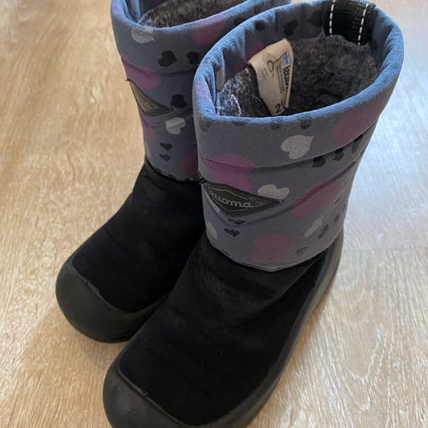 Kuoma lasten talvisaappaat, koko 29. Väri musta, unisex-malli. Kengissä on korkea varsi ja paksu pohja, jotka suojaavat jalkaa kylmältä ja lumelta. Sopivat arki- ja ulkoilukäyttöön lapsille talvikeleille.