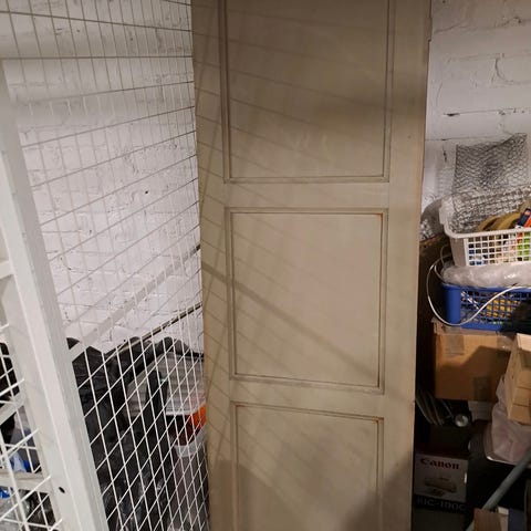 Myydään vanha kirjakaapin ovi, petsattu ruskeaksi, patinoitu kultamaalilla, toiminut sisustuskäytössä. 41 x 95 cm. Nouto Kuninkaantammesta, maksu käteisellä (tasaraha).