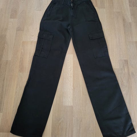 H&M naisten kahdet reisitaskuhousut, harmaat puuvillaa koko 32, mustat hieman paksumpaa denimiä koko 34
