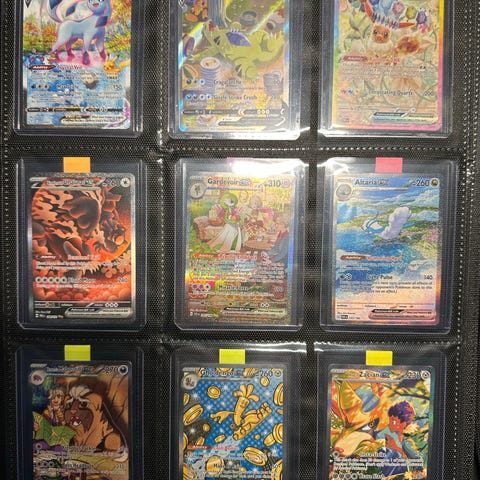 Kaikki kortit on sleevattu avaamisen jälkeen ja jokaisessa on päällä toploader.