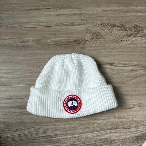 Canada Goose pipo, one size -kokoa. Väri valkoinen ja materiaali puuvilla. Ribbineulosta, käännettävä reunus ja edessä Canada Goose -logomerkki. Sopii aikuiselle, unisex-mallinen pipo arki- ja ulkoilukäyttöön.