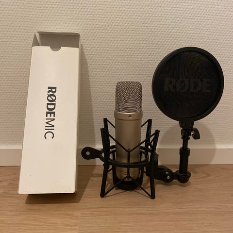 Røde NT-USB+ -mikrofoni pöytätelineellä ja pop-filtterillä