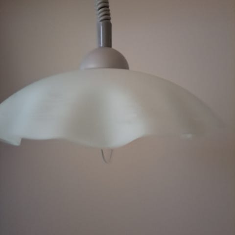 Korkeus 20 cm, kupu 16 cm halkaisijaltaan. Laatuvalaisin. Metalliosat korkeus 6 cm.