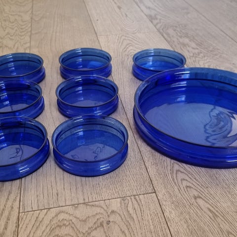 Kunto hyvä, muutama valmistuksessa tullut ilmakupla. Pohjassa aivan pieni lohkeama,joka huomioitu hinnassa.