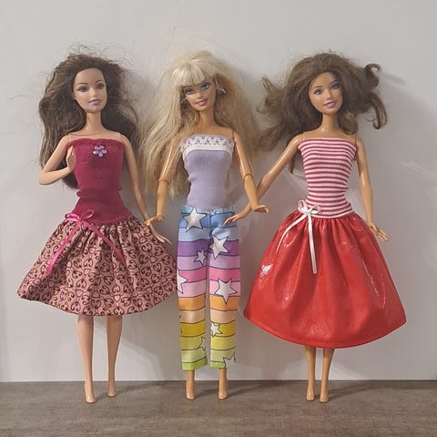 Itse suunnitellut ja ommellut Barbien asut. Asut on helppo pukea ja ne sopivat tavallisimmille Barbeille. Asut on ommeltu huollitellusti uusista kankaista. Jos haluat useamman setin samaan lähetykseen, voit tehdä yhteistarjouksen.