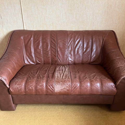 Myydään kahden istuttava valkoinen nahkasohva. Koiratalous. Sohvassa muutamia naarmuja jotka luultavasti nahkamaalilla saa piiloon. Muutoin ihan hyvässä kunnossa. Mitat noin 170x90x80