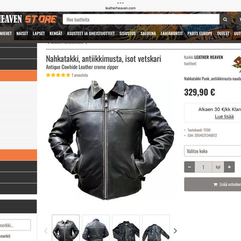 Outfit miesten nahkatakki M musta, 1950-luvun malli