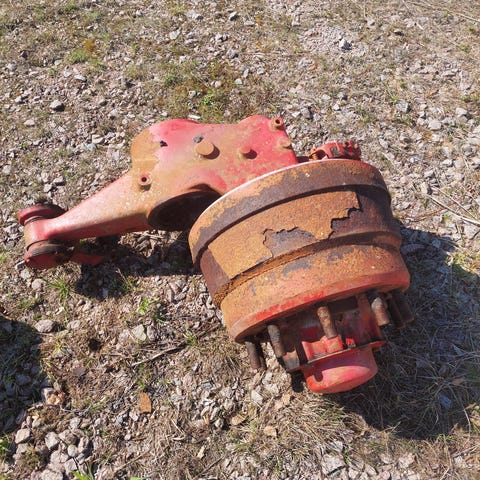 Myyntiin Scania kuorma-auton alustan etupäästä purettu poikittaispalkki.