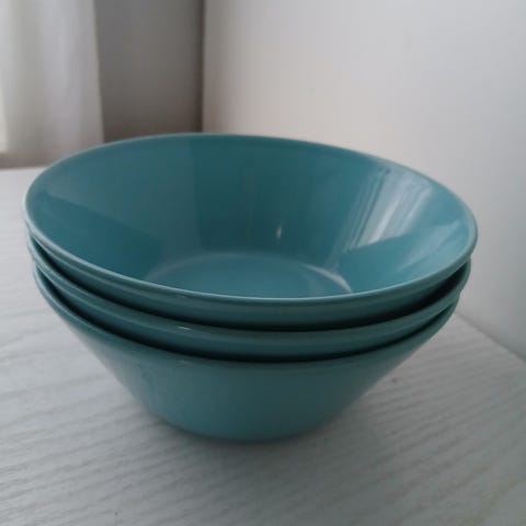 Iittala turkoosit kulhot. Soveltuvat esimerkiksi aamiaiskulhoiksi, jälkiruuille tai tarjoiluun. Myydään kuvissa näkyvänä settinä (10kpl).