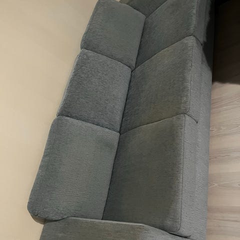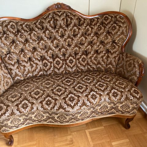 Sohva on siistissä ja hyvässä kunnossa ilman näkyviä vaurioita. Tukeva.