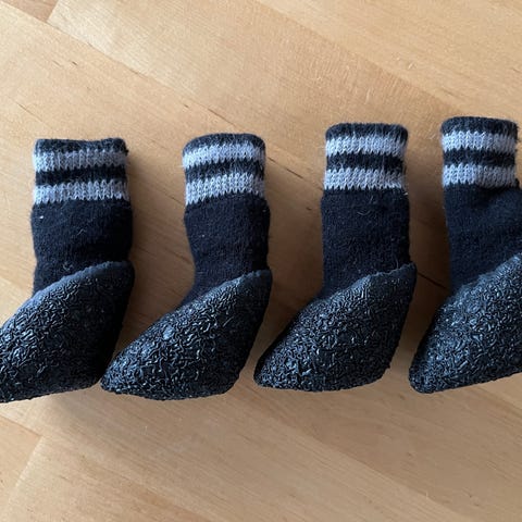 Myydään Mustista & Mirristä ostetut pienen koiran talvitossut/sukat koossa 1, ovh 14,99 €. Tarkemmat mitat kuvassa. Liian pienet meidän käyttöön, joten siksi myyntiin. Liukkauden estävät pohjat.