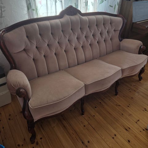 Myyntiin valkoinen levitettävä metallinen sohva.