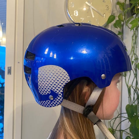 Coconut pyöräilykypärä sininen. Kypärässä on useita ilmanvaihtoaukkoja, säädettävä leukahihna ja takaa säädettävä kiristyspanta istuvuuden parantamiseksi. Soveltuu pyöräilyyn ja muuhun rullailuun, kuten potkupyöräilyyn tai rullaluisteluun käyttäjän pään koon ja sopivuuden mukaan.