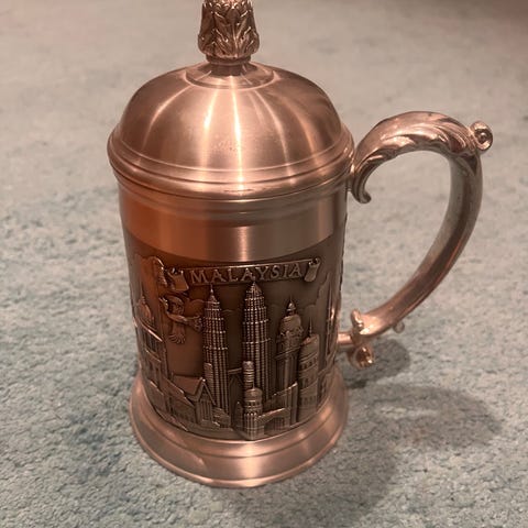 Arabia teekannu ja kahvikannu. Ruskeaa keramiikkaa, mattapintainen lasitus. Molemmissa rottinkipäällysteinen kantokahva ja irrotettava kansi. Sopivat teen tai kahvin tarjoiluun. Pienemmässä kannussa tilavuus arviolta noin 0,5 l ja isommassa noin 1 l. Yhdessä käytettävissä esimerkiksi teekannuna ja maitokannuna tai kahvikannuna ja kermakannuna. Muuten kunto hyvä ,mutta pienen kannun kannessa halkeama ,joka korjattu liimaamalla. Hinta molemmille.
