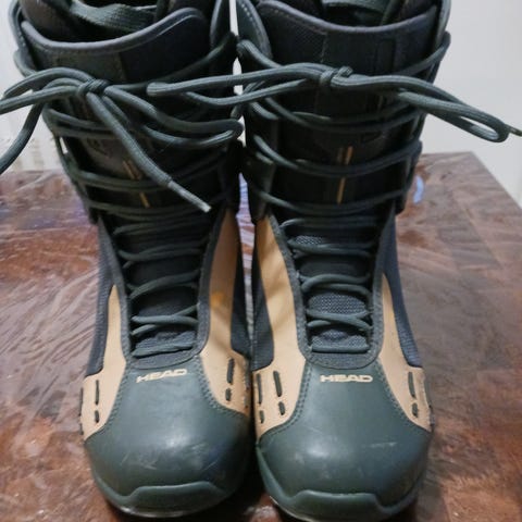 Headin lumilautakengät. Väri musta punaisilla yksityiskohdilla ja tikkauksilla. Nauhakiinnitys edessä ja korkea varsi tukemaan nilkkaa. Sopivat lumilautailuun. Koko 42, mondo 270.