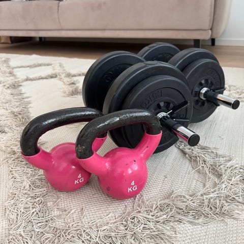 8kg kahvakuula, 5 ja 4 kg käsipainot
