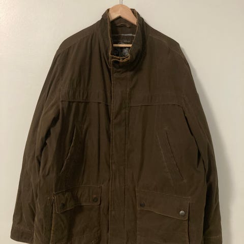 Hampton Republic lämmin takki, jossa irrotettava turkiskaulus, edessä vetoketjun ja painonapinkiinnitys, kaksi läpällistä etutaskut ja vetoketjullinen rintatasku, toisessa taskussa korjattu pieni repeämä (kuvassa näkyy), pehmeä sisävuori ja kaksi vetoketjullista povitaskua, päälliskangas 100% puuvillaa, vuori1: 100% polyesteri,