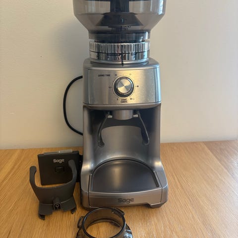 Myynnissä myös Sagen kahvimylly. Espressokone + kahvimylly yhdessä 300 e.
