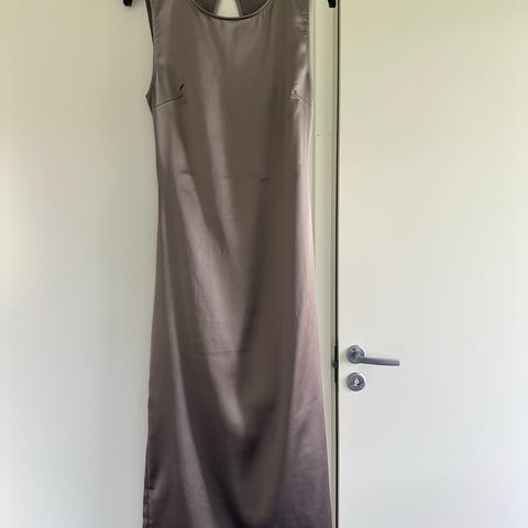 Juhla- tai cocktailmekko naisille. Mekko on beigeä sävyä ja valmistettu sifongista, jossa on pitsimäinen, kukkakuvioitu yläosa. Lyhyet hihat ja pyöreä pääntie. Selkäpuolella on avoin leikkaus ja nappikiinnitys yläosassa. Alaosa on kevyesti laskeutuvaa sifonkia. Koko 36